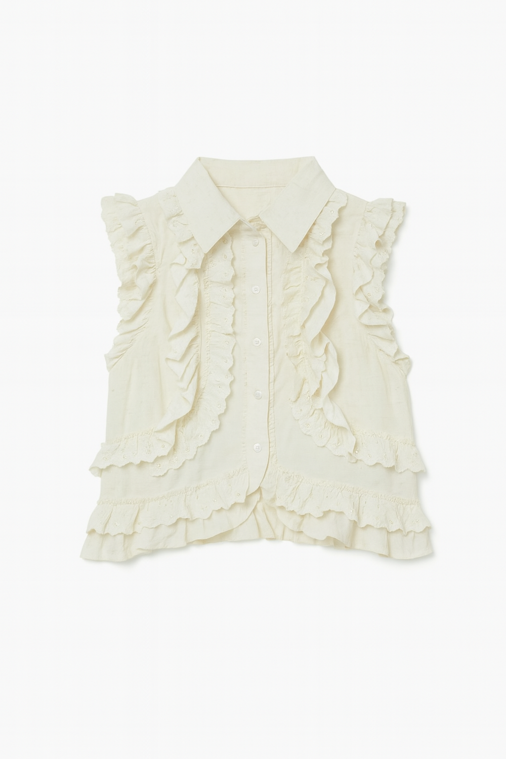 The Vienna Layered Ruffle Eyelet Crop Top brings a playful charm to your work wardrobe. Its delicate eyelet fabric and layered ruffles add a trendy, feminine touch, while the cropped fit keeps it fresh and stylish. Perfect for pairing with high-waisted pants or skirts, this top effortlessly blends cute details with office-ready flair.